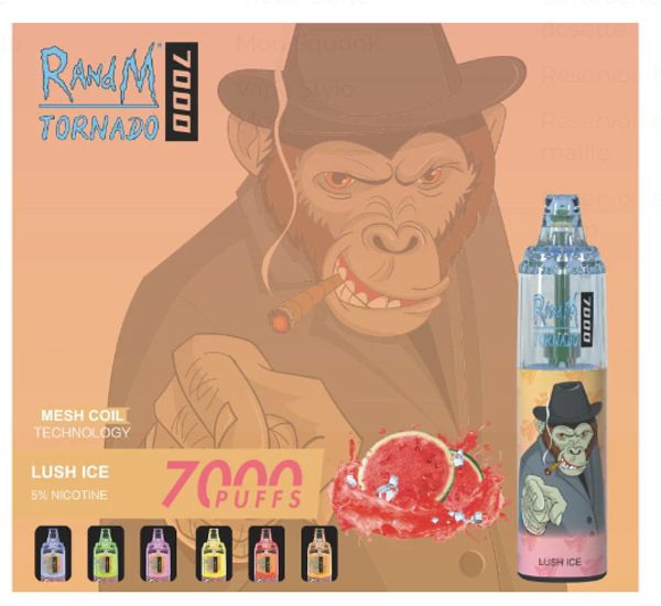 🔒 Sécurité et Fiabilité : RandM Tornado prend votre sécurité au sérieux. La Gamme 7000 est construite selon des normes de qualité rigoureuses, assurant une expérience de vapotage fiable et sans souci à chaque utilisation.