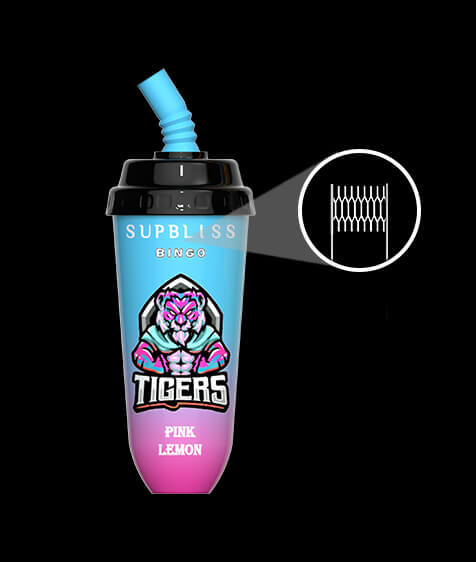 Bingo Supbliss 8000 est un vape pod jetable et rechargeable en forme de tasse de bubble tea. Il peut être chargé via le port Type-C sur sa base.